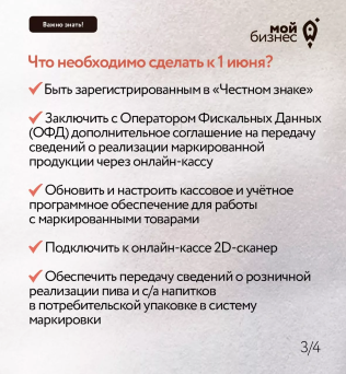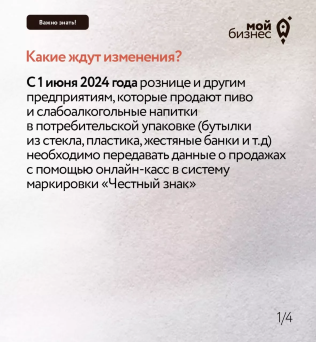 С 1 июня 2024 года рознице и другим предприятиям, продающим пиво и слабоалкогольные напитки в потребительской упаковке, необходимо передавать данные в систему маркировки «Честный знак»