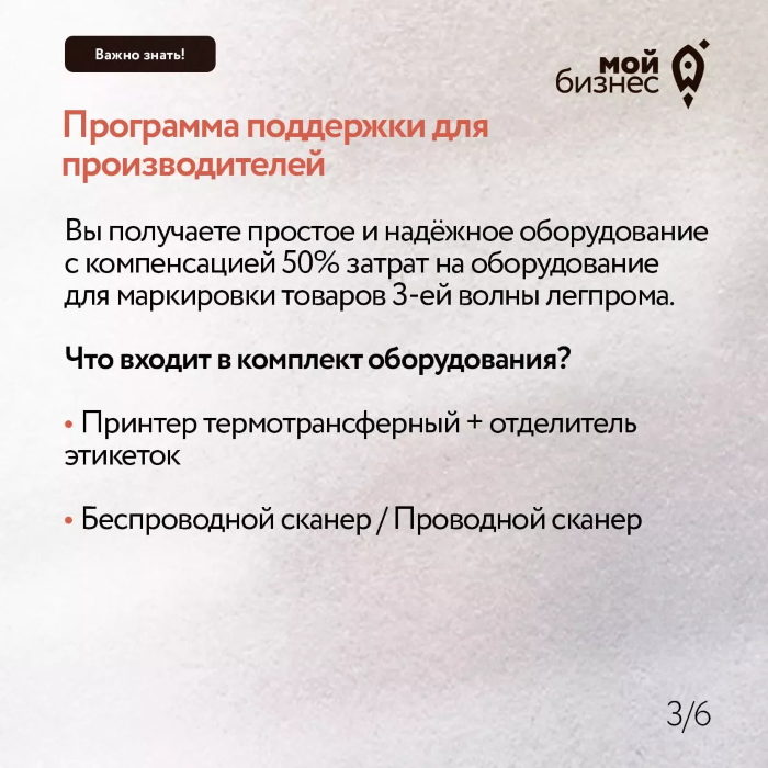 - Программу компенсации 50% затрат на приобретение оборудования для маркировки производителями