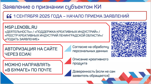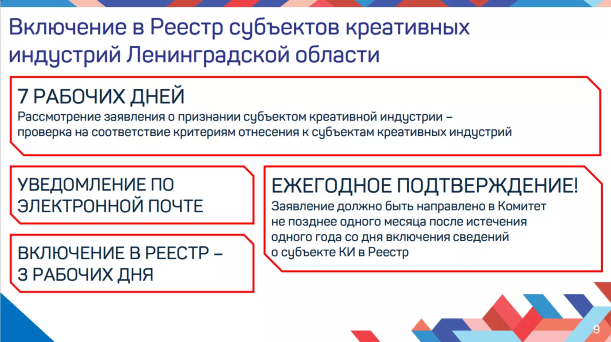Критерии отнесения к субъектам креативных индустрий Ленинградской области