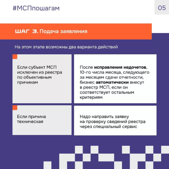 Бывает, что предприятие было в реестре, но потом пропало. Почему? Что делать? Как вернуться в реестр и продолжать пользоваться льготами? — разбираем в карточках Корпорации МСП