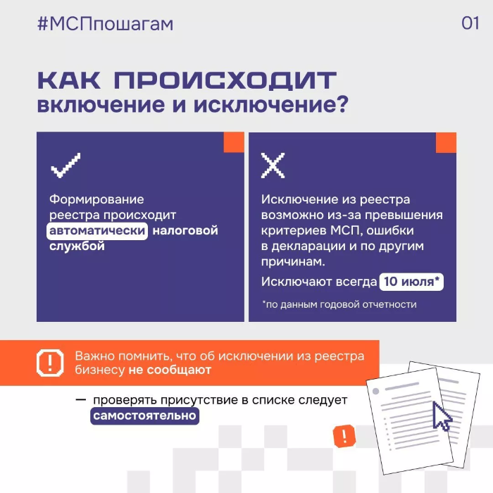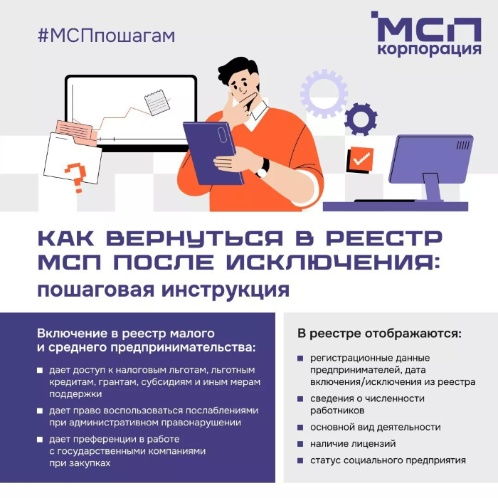 Бывает, что предприятие было в реестре, но потом пропало. Почему? Что делать? Как вернуться в реестр и продолжать пользоваться льготами? — разбираем в карточках Корпорации МСП