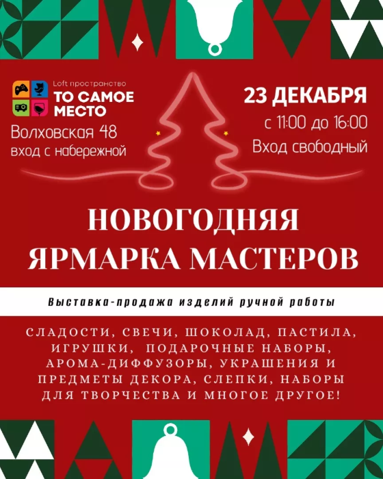 23 декабря с 11:00 до 16:00 в Loft-постранстве «То самое место» пройдет мероприятие, которое объединит лучших handmade мастеров нашего города! Вас ждет уютная атфосфера, сотни изделий ручной работы и классные новогодние фотографии, которые мы сделаем для вас в нашем пространстве!