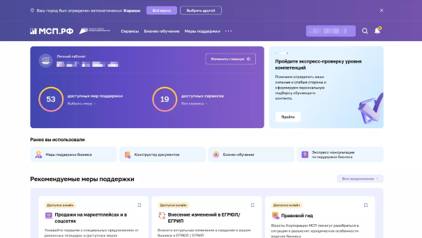 3. В личном кабинете проверяем сверху ваш город и выбираем из меню кнопочку "Меры поддержки".