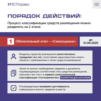 До 1 сентября необходимо пройти самооценку для классификации в системе Росаккредитации, чтобы включить свои средства размещения в Единый реестр классифицированных объектов.
