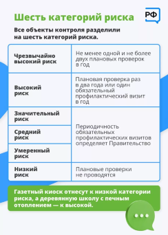 В основе системы — рискориентированный подход. Все объекты контроля разделены на шесть категорий по уровню риска, который их деятельность может создавать для жизни и здоровья людей: от чрезвычайно высокого (например, производства, где используются высокотоксичные вещества) до низкого (цветочный магазин).